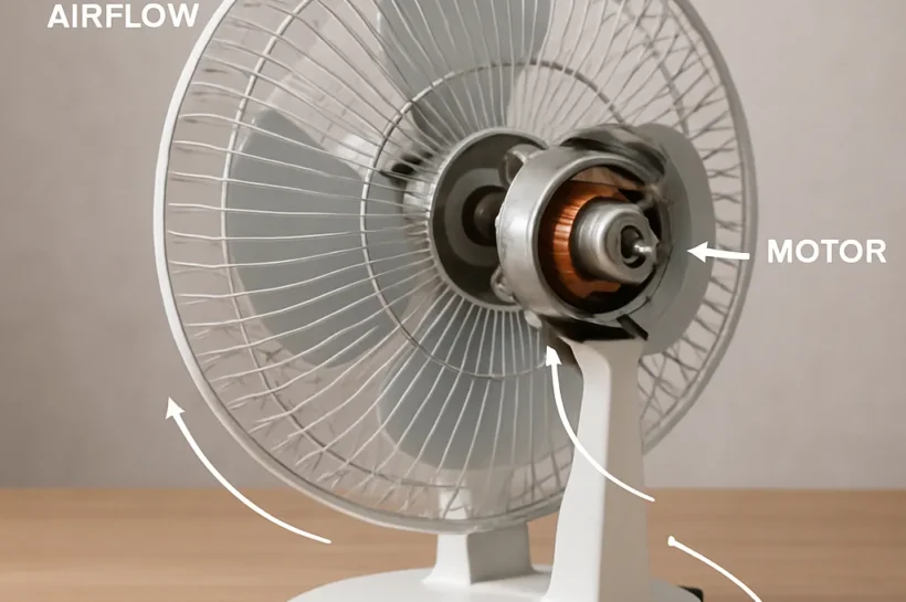 Ein Ventilator nutzt die gezielte Bewegung von Luft, um Räume zu belüften, für angenehme Kühlung…